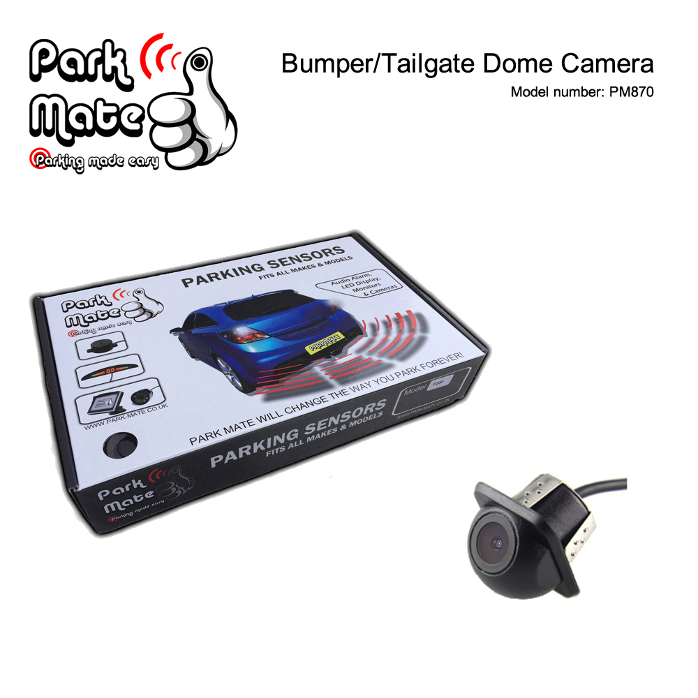 The Park Mate PM870 is a small colour camera, which can be mounted to a rear bumper (normally mounted on top of the number plate recess) or on the tailgate (normally mounted on top of the number plate recess) Use the free bumper cutting tool to drill into the bodywork. Simply push the camera in & the camera will fix into place. Comes with a power lead to attach to the reverse light, & a 6 metre video cable to connect the video feed to the monitor at the front (this lead also has its own power lead to give power to the monitor from the reverse light)