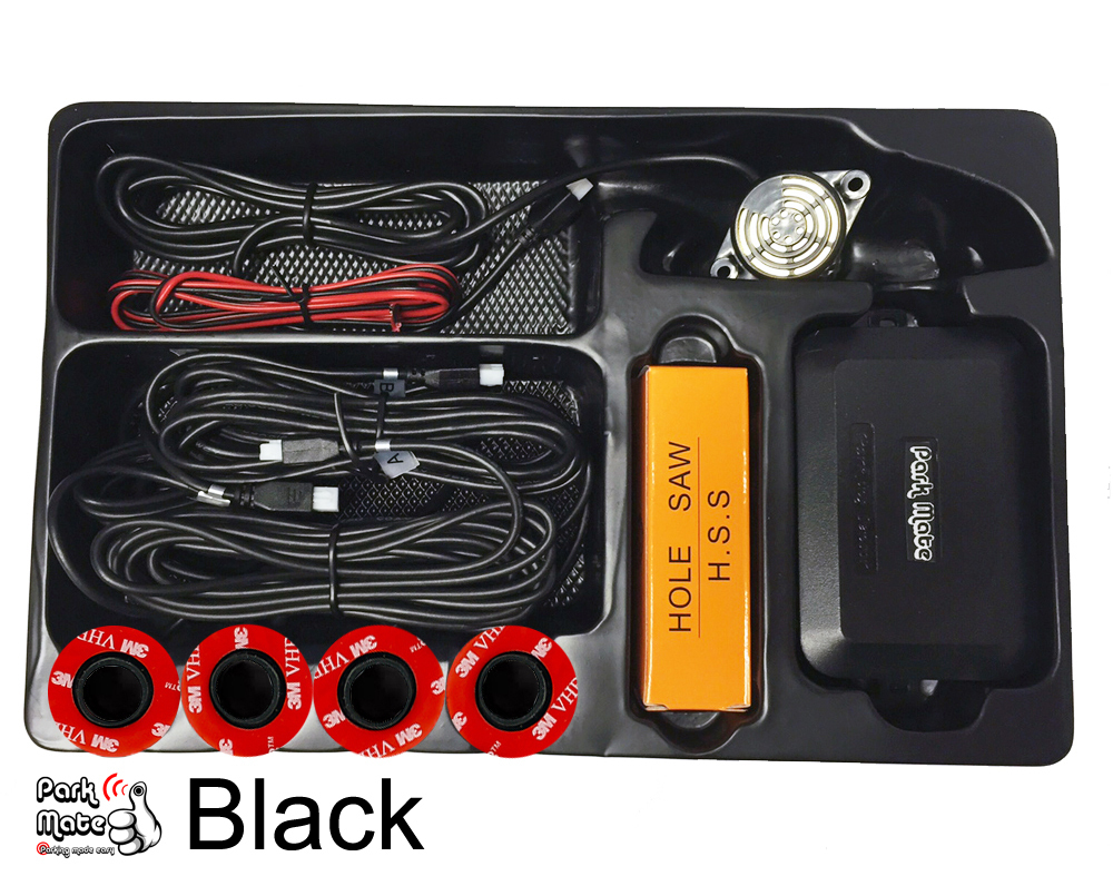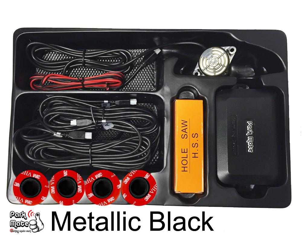 The Park Mate PM320 flush fit front parking sensors are our smallest sensor heads, measuring at just 16.5mm in diameter, which sit flush inside the bumper. This easy-fit system includes 4 flush fit mounted sensors, which are attached to inside the bumper with the 3M double-sided adhesive pads (please choose from one of the 20 pre-coloured sensor heads, or choose our custom sprayed painted service to match your existing paintwork) These sensors are depth adjustable from 1mm-4mm, with a screw mechanism to adjust to different thickness of bumpers. This high quality universal reversing sensors system will cover the widest of cars & give off a professional finish. Included is a audio buzzer which gives audible bleeps with increasing frequency as you get closer to an obstacle. Free bumper drill bit included. Power cable & 2x snap connectors supplied - simply insert the wire inside the connector, connect to the positive cable on the reverse light, squeeze the contact down flush with the connector and snap the hinged cover in place. It's that easy! Fitting guide can also be found at the bottom of the Park Mate website.